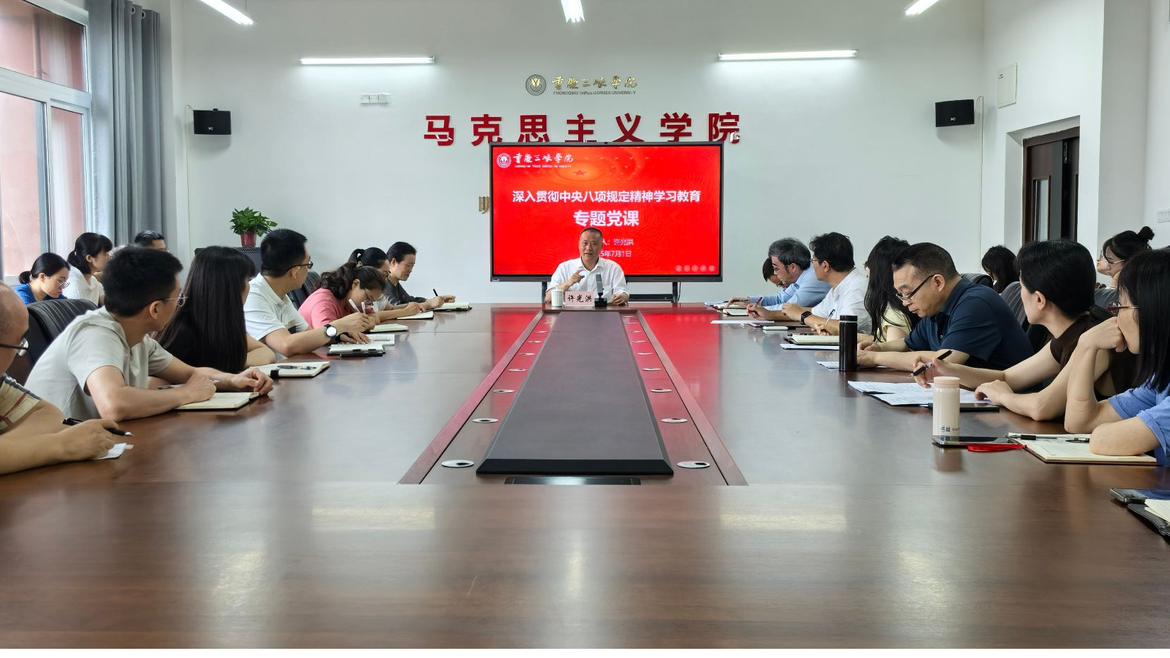 7月1日,校党委书记许光洪在博学楼3-426会议室以“毛泽东调查研究思想与实践”为主题,为党委宣传部党支...