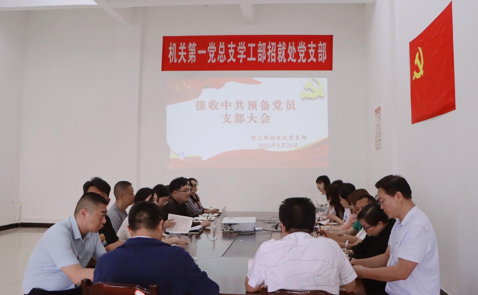为扎实做好基层党建工作,加强党员队伍建设,5月24日,学工部招就处党支部在众创空间111召开党员大会,讨论接收预备党员事宜。会议由支部书记任江林主持,全体党员、发展对象参加。