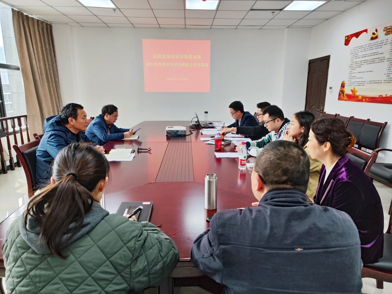 3月10日下午,纪检监察室审计处党支部召开2021年度基层党组织组织生活会和开展民主评议党员。支部书记刘平清同志主持会议,支部党员王立同志同时作为机关二总支纪检委员参加会议。