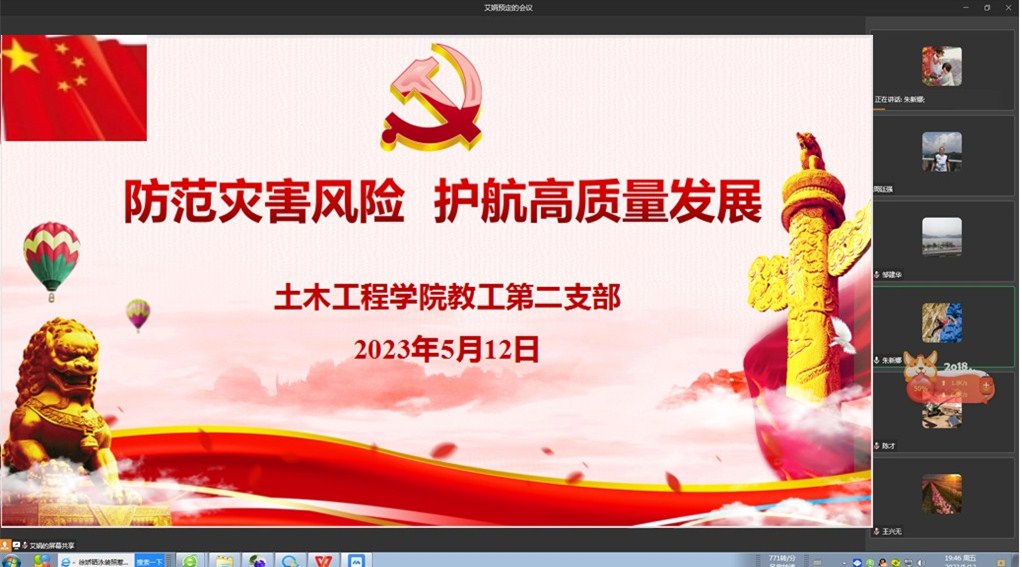5月12日,教工第一党支部和第二党支部通过企业微信会议分别开展了政治理论学习,学习了《9728太阳集团新时代中国特色社会主义思想专题摘编》相关内容和9728太阳集团总书记关于安全生产、防灾减灾的重要论述,观看了《2023年5.12全国防灾减灾日教育宣传片》。