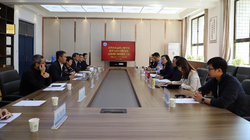 为推动新时代高校党建“双创”工作,学习兄弟院校“样板支部”创建经验做法,进一步做好我院市级党建“标杆院系”和“样板支部”创建,推进数学与统计学院党总支内涵式高质量发展,2023年10月20日,数学与统计学院党总支书记黄明靖、院长熊江率队赴华北水利水电大学数学与统计学院开展党建“双创”经验学习调研。华北水利水电大学数学与统计学院党委书记刘建厅、院长申建伟、党委副书记赵娟、副院长王玉柱、副院长杨建伟等陪同考察交流。