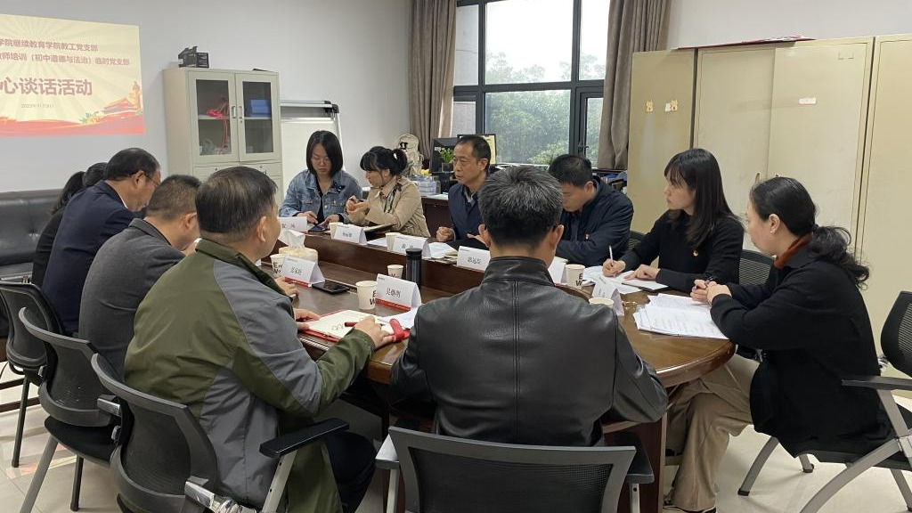 2023年11月9日下午重庆三峡学院继续教育学院教工党支部和“国培计划(2023)—重庆市区县级骨干教师培训(初中道德与法治)培训班”临时党支部在科技楼206举行“党支部共建——谈心谈话活动”。