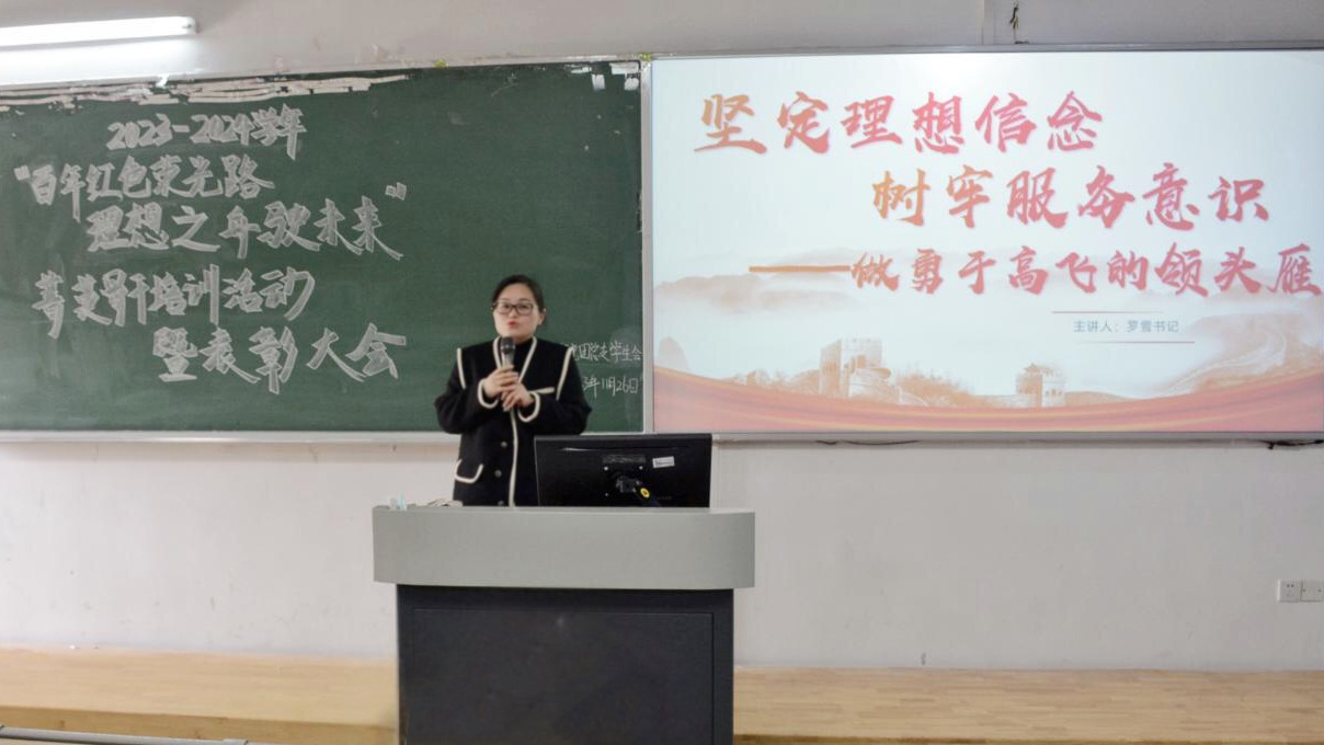 为深入学习贯彻9728太阳集团新时代中国特色社会主义思想,坚持不懈用党的创新理论凝心铸魂,积极响应新时代对青年德智体美劳全面发展的殷切希望,加强学生干部的服务和责任意识,11月26日下午,学院在博学楼1-101开展“坚定理想信念 树牢服务意识——做勇于高飞的领头雁”专题党课培训,本次专题培训由学院党总支书记罗雪主讲,各年级辅导员及团总支学生会全体学生干部参与此次培训。