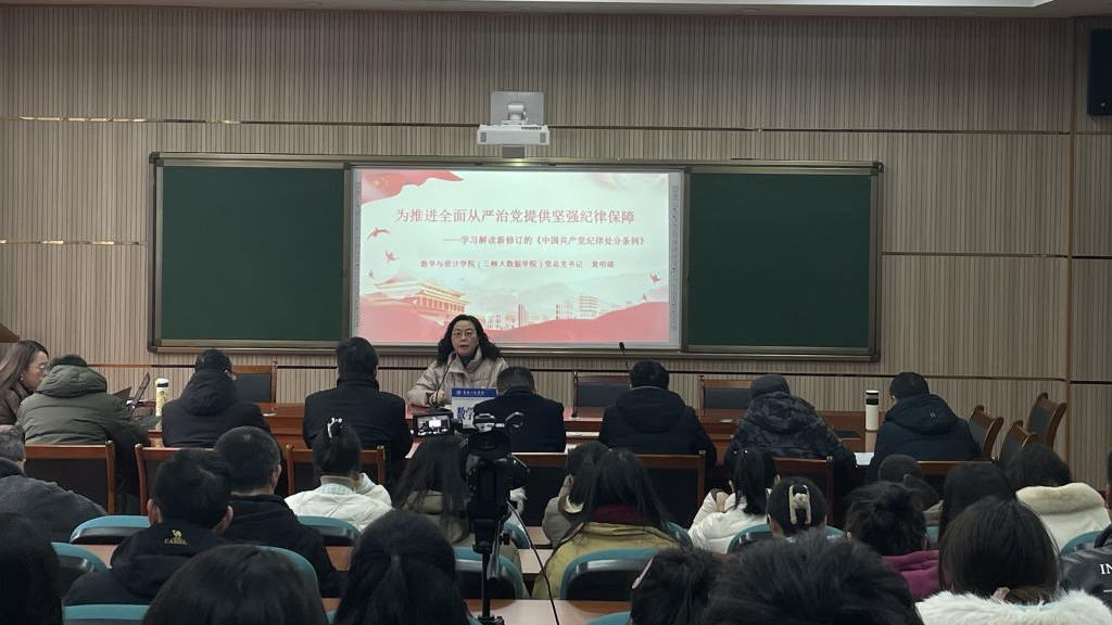 新学期、新起点、新征程,数学与统计学院党总支履行全面从严治党主体责任,把学习新修订的《中国共产党纪律处分条例》作为新学期纪法教育的“第一课”。