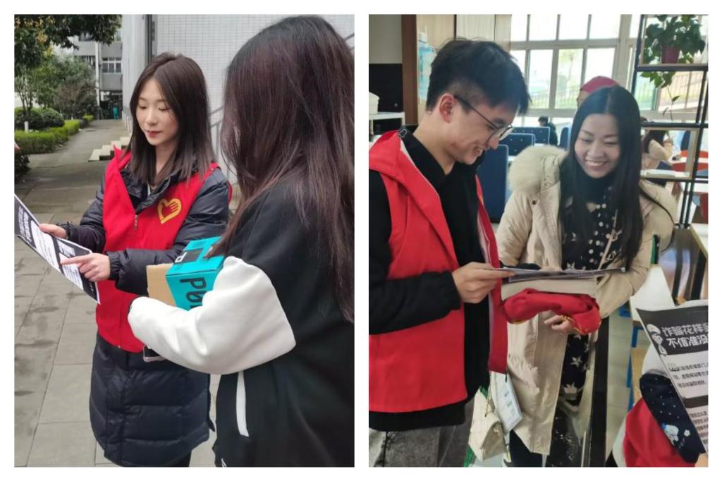 活动最后,海棠苑社区的学生党员们走出活动室,深入同学们的宿舍和食堂,展开了一场别开生面的反诈宣传活动。他们手拿宣传单,积极传播防骗知识,帮助同学们筑牢防诈意识。他们以实际行动诠释着学生党员的先锋模范作用,让防范诈骗的理念深入人心,为构建安全和谐的校园环境贡献了自己的力量。