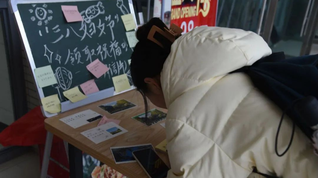 活动期间,党支部成员在食堂门口设点,为同学们送上写有祝福语的明信片,让大家感受到学校大家庭的温暖。此外,专为节日设置的“留言板”也成为了校园的一处“风景”,同学们踊跃参与,“纸短情长”,言语有限,可祝福无限!