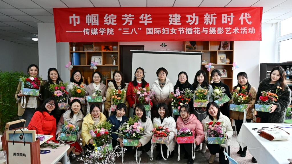 阳春三月,春意盎然,第114个“三八”国际妇女节如期而至。为活跃女职工文化生活,展示女职工精神风貌,激发女职工爱党爱国、建功新时代的使命感和责任感,我院党总支、分工会精心策划了以“巾帼绽芳华 建功新时代”为主题的“三八”国际妇女节插花与摄影艺术活动。学校党委常委、纪委书记代远红与传媒学院20余名女职工欢聚一堂,共同庆祝节日。