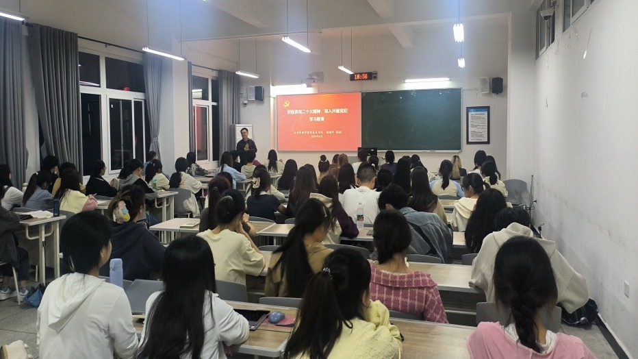 为了进一步贯彻落实党的二十大精神,深入开展党纪学习教育,公共管理学院党总支书记赵翔宇于2024年4月18日晚,在博学楼1栋106教室,为发展对象及入党积极分子讲授题为“积极贯彻党的二十大精神,深入开展党纪学习教育”的党课。