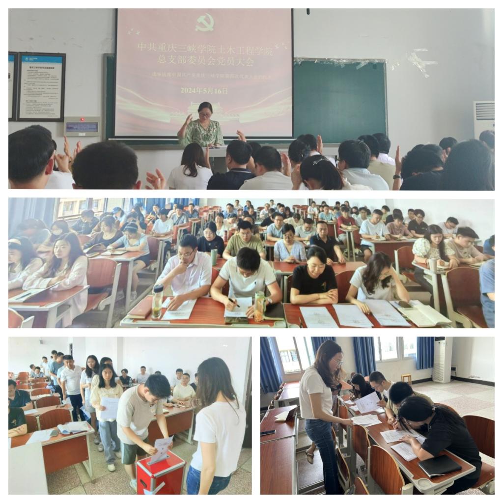 2024年5月16日下午,土木工程学院党总支在慎思楼5栋429教室召开党员代表大会,选举产生出席中共重庆三峡学院第四次代表大会代表。会议由学院党总支书记罗雪主持,学院81名党员参加了会议。