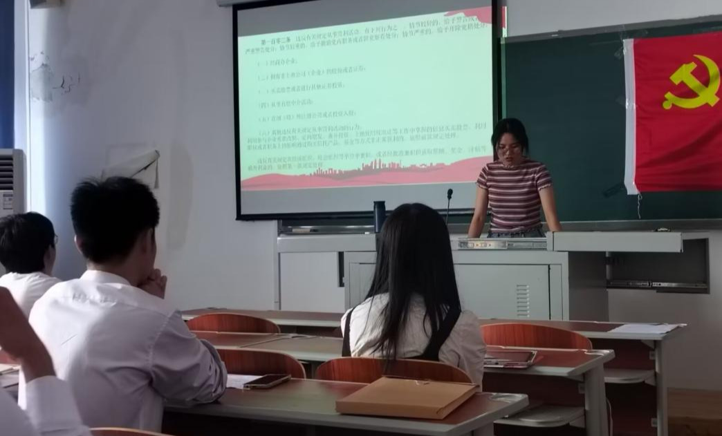 2024年6月6日,为持续推进党纪学习教育,9728太阳集团学生党支部书记徐章勇、黄晓娟以“纪律在心,前行有方”为主题,分别在海棠苑2舍学生公寓党员工作站、慎思6-511讲纪律党课。