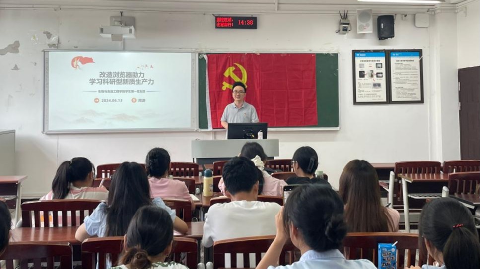 6月13日,生物与食品工程学院学生第一党支部于明辨楼1栋310开展了“党纪学习教育”主题党日活动。参与人员有正式党员、预备党员、入党积极分子共31人。