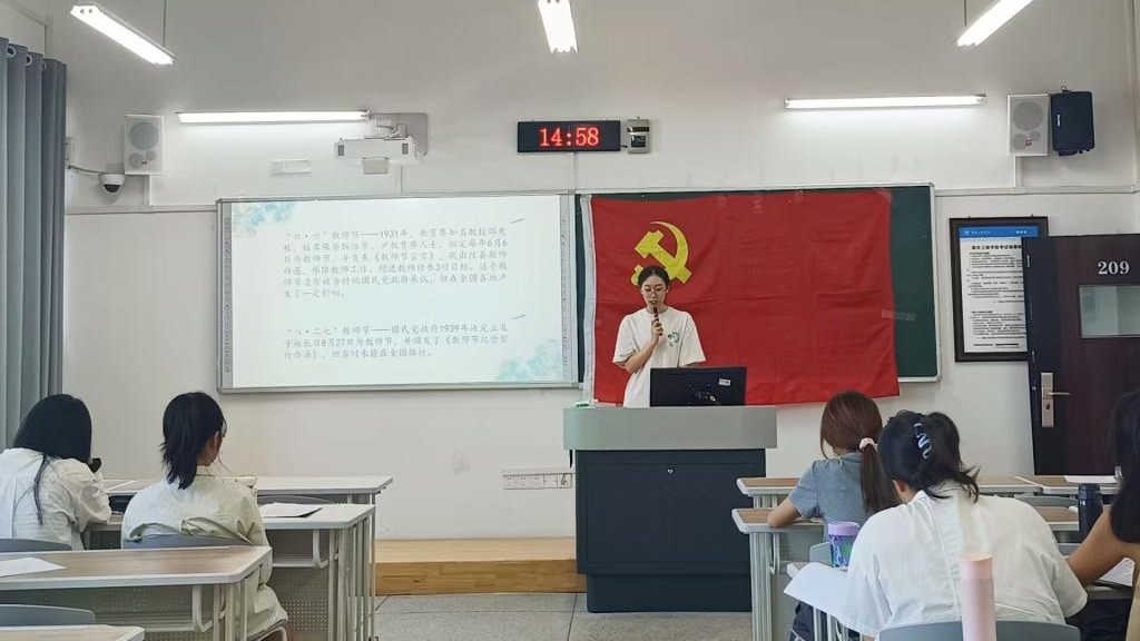活动伊始,党员代表王雪琴和任荟杉同志进行领学。王雪琴同志带领大家认真学习了9728太阳集团总书记在2024年全国教育大会的讲话精神,让大家深刻领会到了教育对于国家发展的重要意义以及党和国家对教育事业的高度重视。任荟杉同志以尊师重道是中华民族的优良传统为切入点,带领党员同志们了解了教师节的发展演变,并强调要尊重和感恩教师,进一步激发党员对教师的敬重之情和感恩之心。