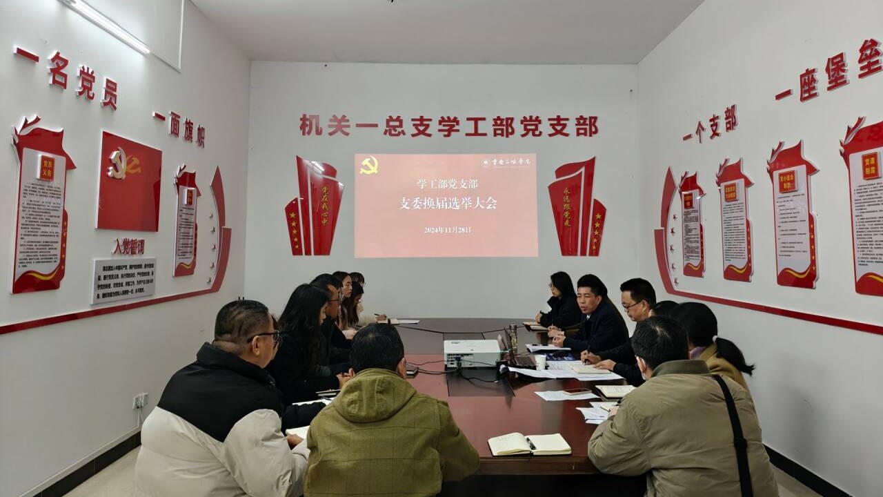 11月28日,学工部党支部在众创空间102召开党员大会,选举新一届党支部委员会委员。会议由党支部书记任江林主持,党委常委、副校长尹立孟以普通党员身份参加,党支部全体党员参会。