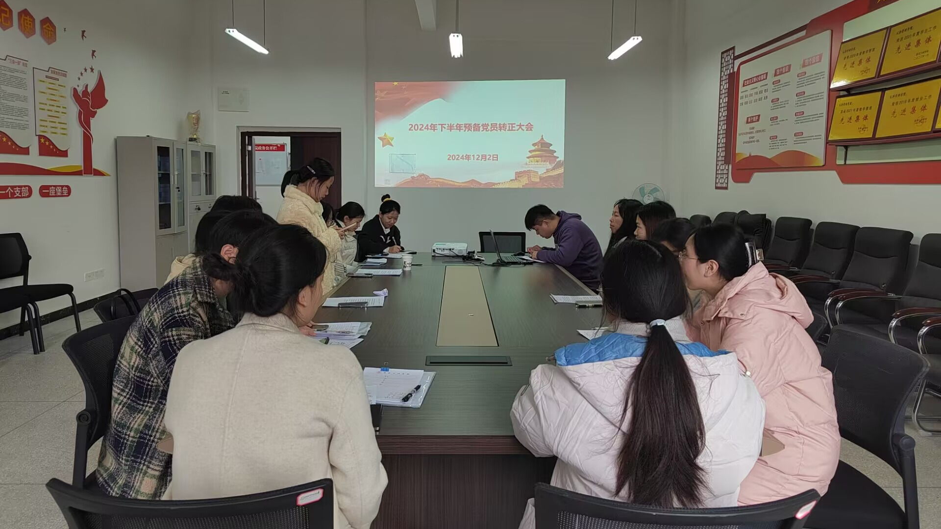 为加强党性修养锤炼,为党组织凝聚新锐之力,激发奋进活力,公共管理学院学生党支部于2024年12月2日在博3栋520召开2024年下半年预备党员转正大会,讨论关于王佳佳等15名预备党员的转正申请。会议由学生第二党支部书记程航同志主持,党支部全体党员、预备党员参加会议。