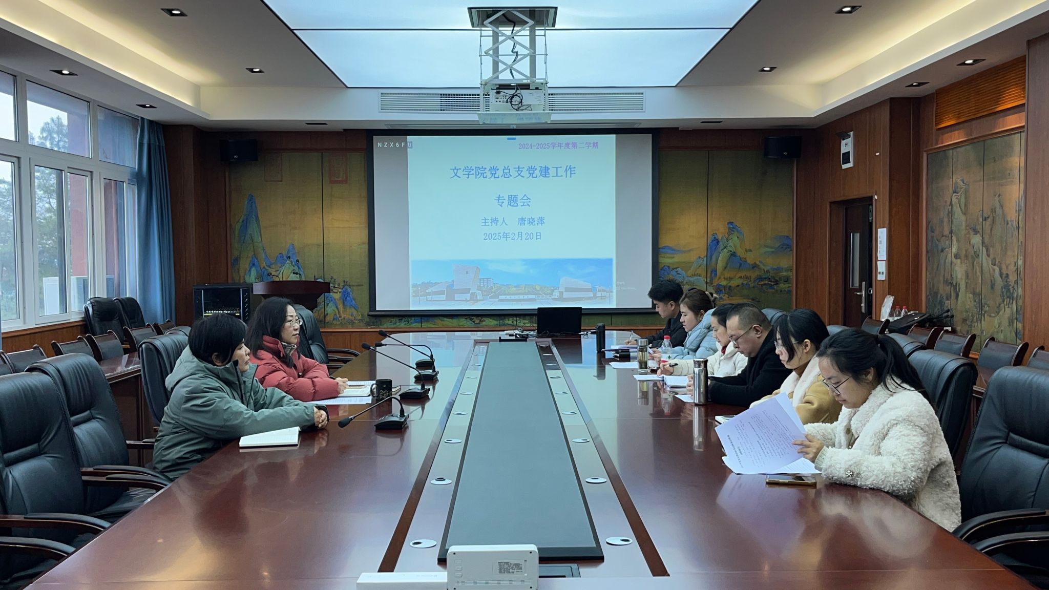 2025年2月20日下午,文学院党总支在博学楼3栋404召开党建工作专题会。会议由文学院党总支书记唐晓萍主持,全体党总支委员、各党支部书记参加了此次会议。此次会议聚焦学院党建工作重点,对年度工作的深入开展和整体布局具有重要意义。