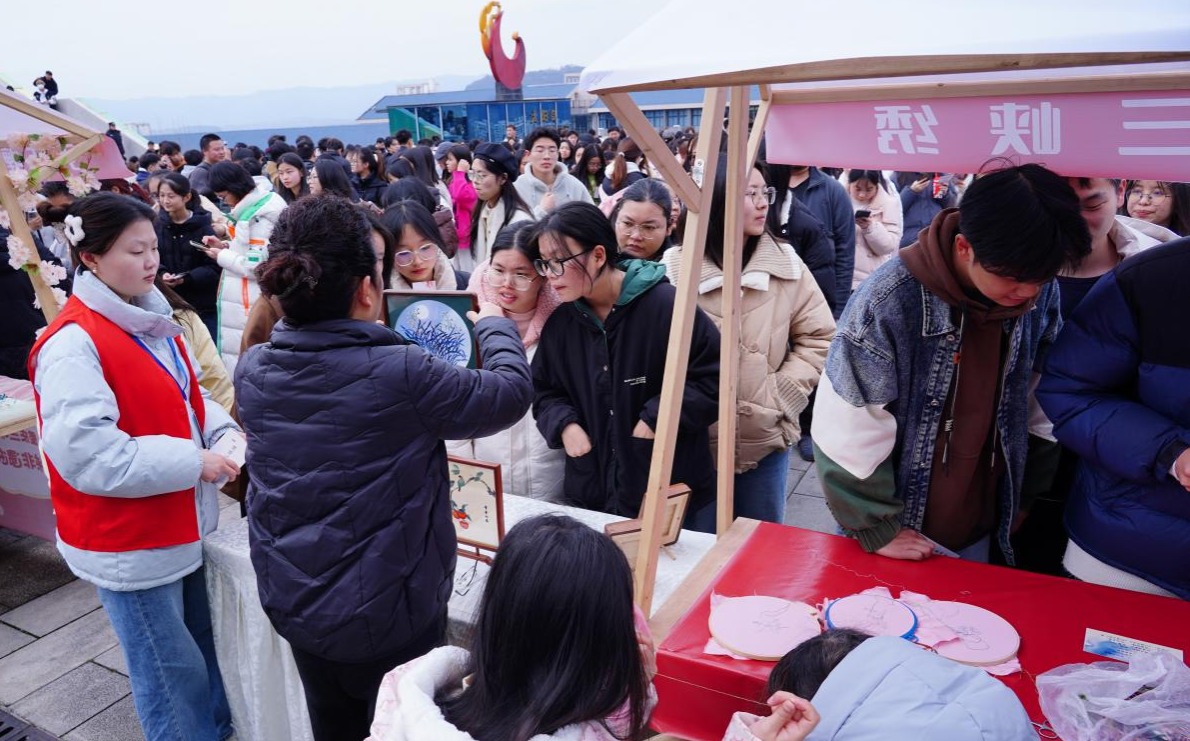 现场通过金钱板、四川竹琴、四川清音、四川车灯、万州竹雕、糖画、万州三峡绣等国家级、市级、区级非物质文化遗产代表性项目作品的展演、展示、现场体验交流,让青年更深入地了解万州非遗文化,激发他们对传统文化的兴趣和热爱。