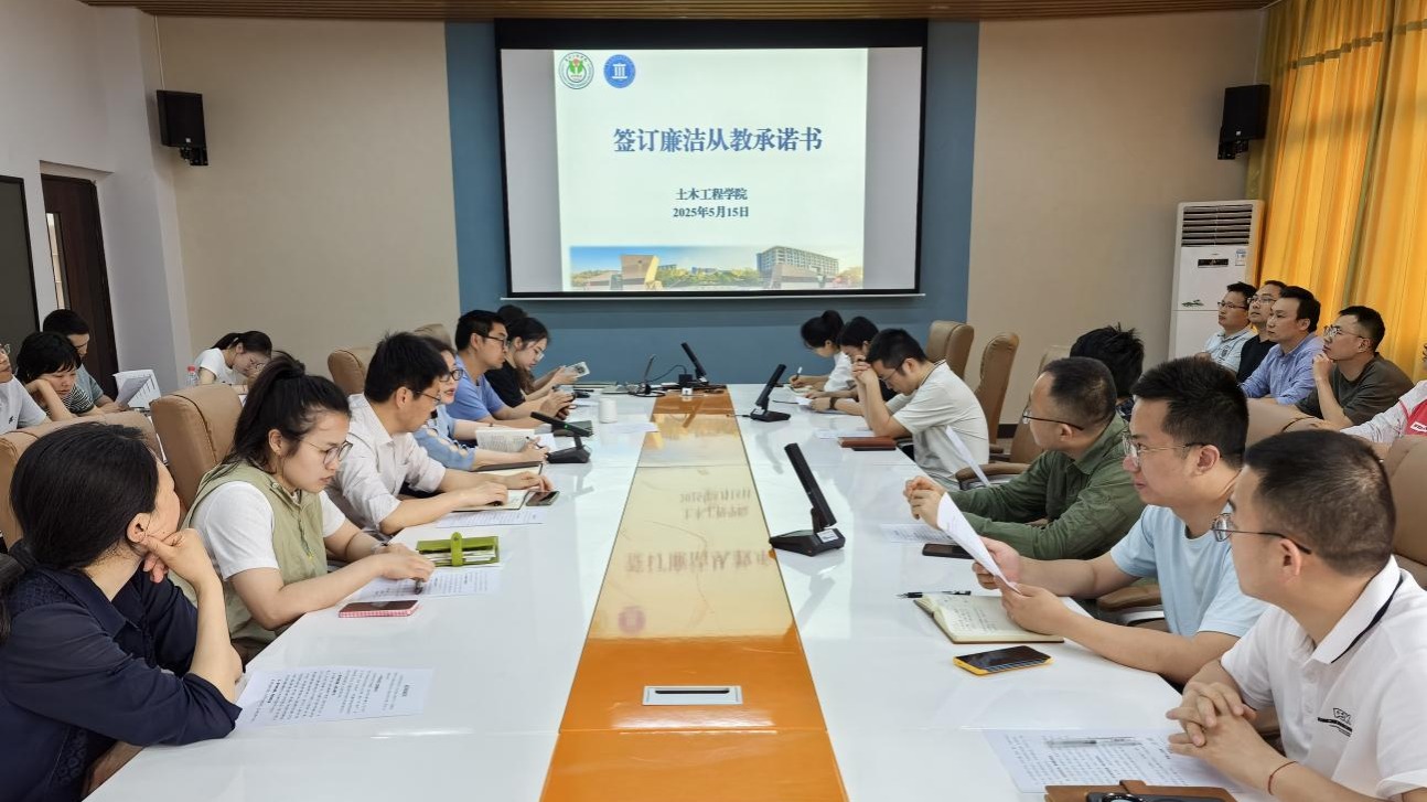 最后,全体教职工签订廉洁从教承诺书。承诺书从“严守政治纪律,坚定理想信念;恪守职业道德,规范从教行为;坚守学术诚信,杜绝学术不端;规范师生关系,秉持廉洁理念;自觉接受监督,强化自我约束”5个方面对教职工提出明确要求,旨在引导全体教职工自觉坚守职业道德。罗雪强调,廉洁从教是教育工作者的基本准则,全体教师要时刻保持清醒的头脑,自觉抵制各种诱惑,做到以德立身、以德立学、以德施教,树立良好的教师形象。大家一致表示,将切实提高政治站位,筑牢思想防线、严守职业操守,以优良师风促学风、树院风,将以务实的工作作风,积极参与学院各项工作,为新时代学院高质量发展提供坚实保障。