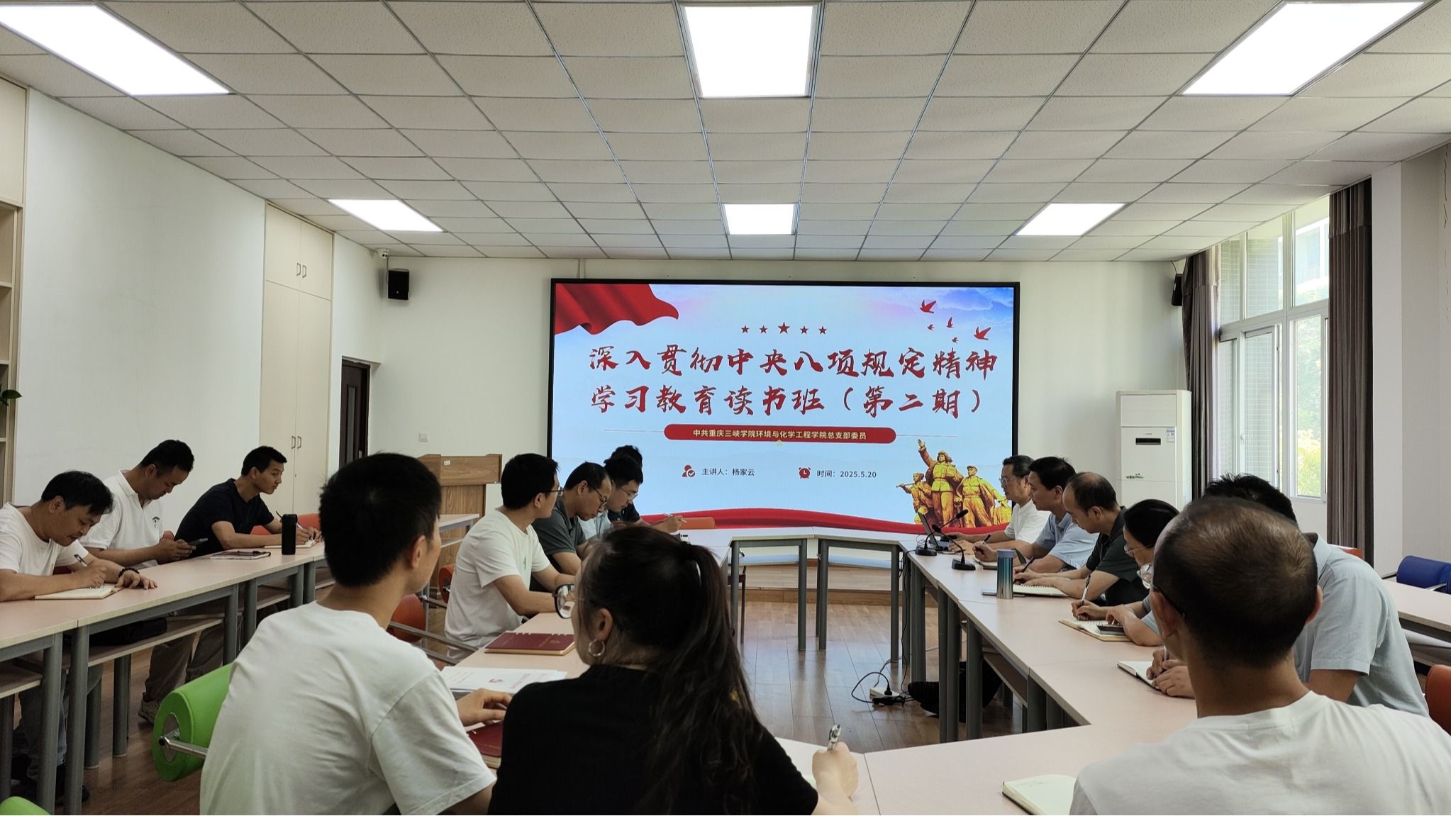 5月20日上午,环境与化学工程学院党总支在慎思楼4栋206举办深入贯彻中央八项规定精神学习教育读书班(第二期)。学院班子成员、党总支委员、科级干部、各党支部书记和党支部委员二十余人参加了此次学习,专职组织员杨家云担任主讲人。