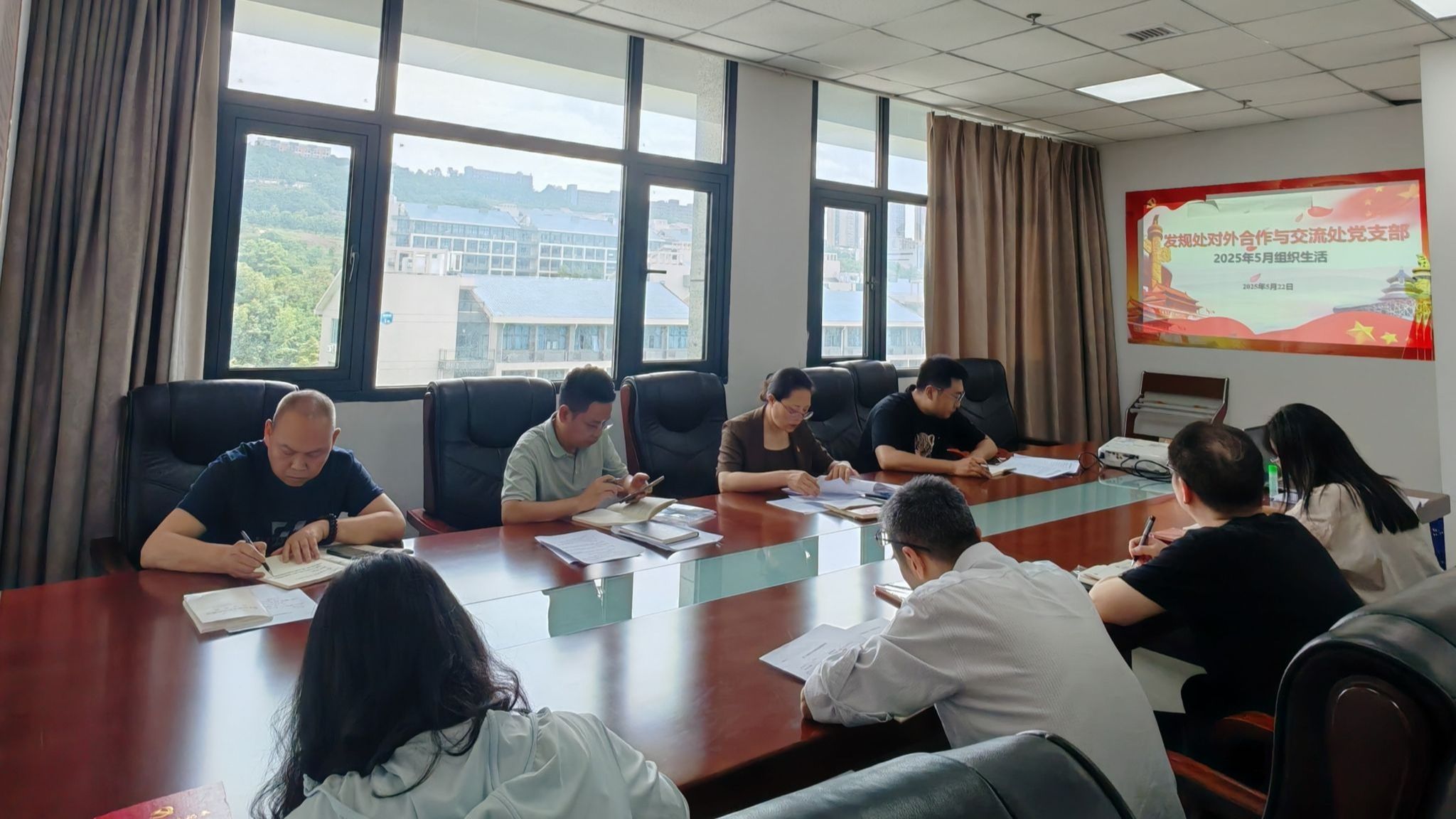 5月22日下午,发展规划处、对外合作与交流处党支部在科技楼八楼第六会议室组织开展5月组织生活。党支部书记黎平同志主持,党支部全体党员参加了此次活动。活动紧紧围绕“清风化人厚植廉洁底蕴 勤政清廉涵养新风正气”,通过专题学习、案例剖析等形式,进一步强化党性修养,筑牢思想防线,切实增强党员干部廉洁从政的政治自觉、思想自觉和行动自觉。
