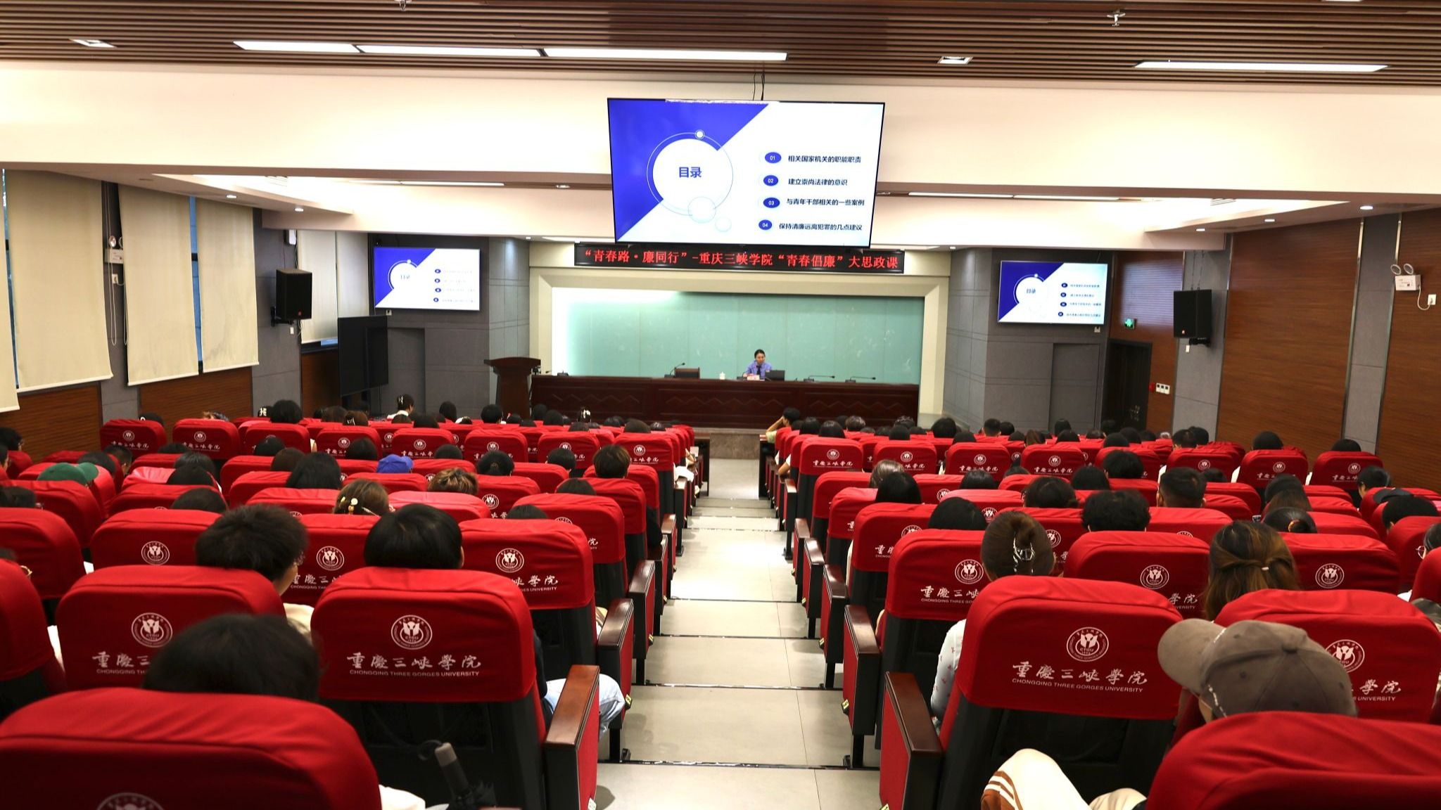 团委工会党支部于5月22日19:00在科技楼连廊会议室开展“青春倡廉”党课学习活动。本次党课邀请重庆市万州区人民检察院检委会委员、重庆市优秀公诉人尹浩,以《青春有梦 廉洁同行》为题为大家授课。参加此次课程的还有专职纪检监察干部、《新时代大学生廉洁文化教育》公选课教学团队、“青马工程”大学生骨干培训班学员、公选课学生、团员青年代表等200余人。