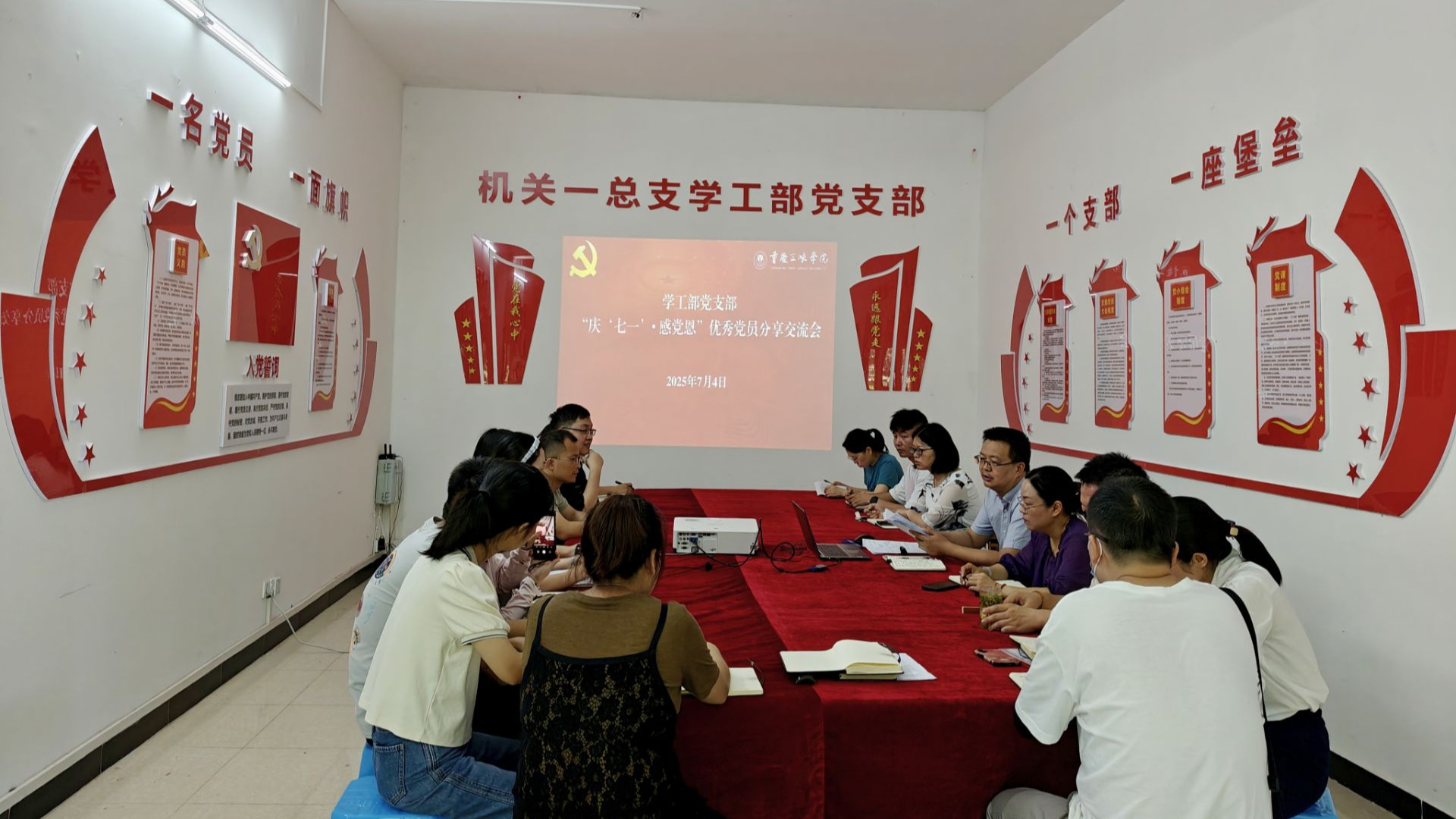 为庆祝中国共产党成立104周年,7月4日,学工部党支部在众创空间102会议室开展“庆‘七一’·感党恩”优秀党员分享交流会。