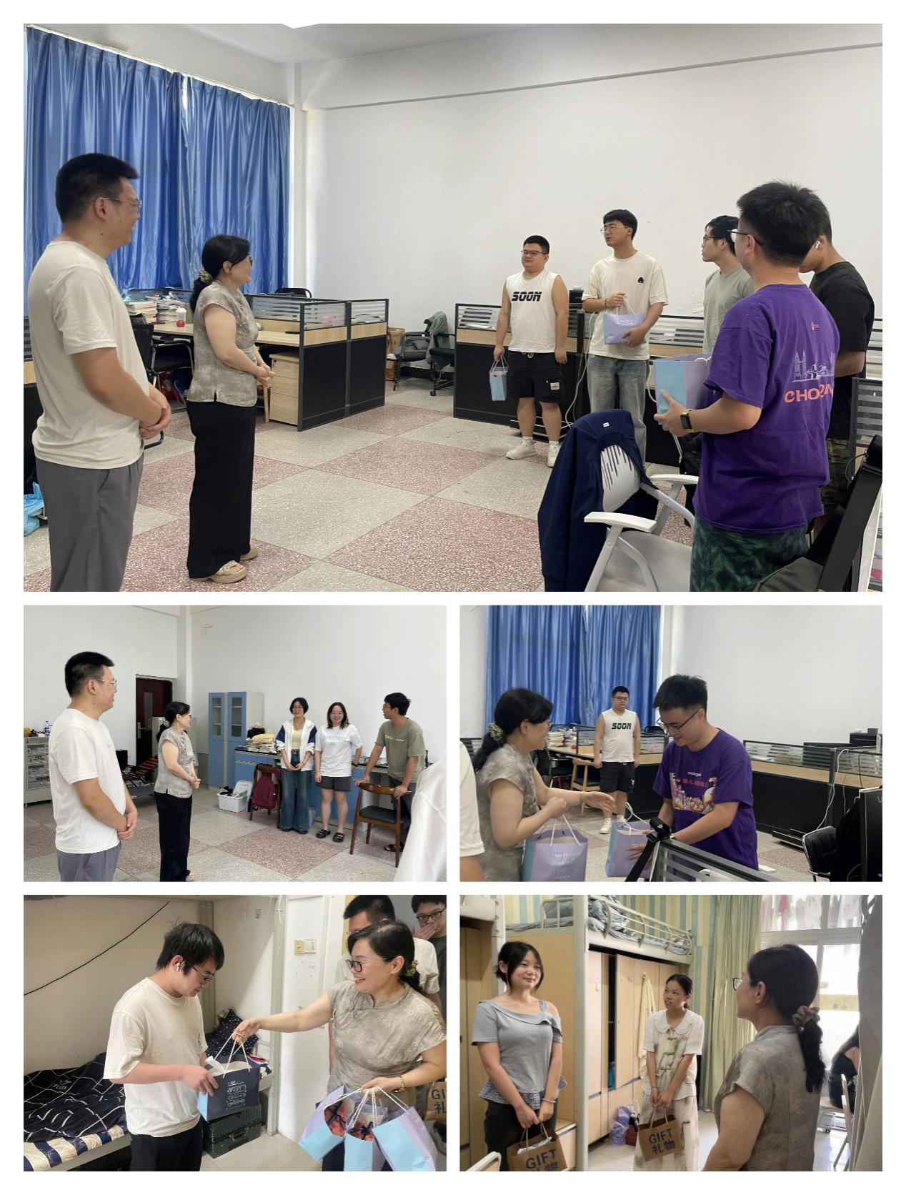 慰问团还为同学们送上了精心准备的慰问礼包,里面装着凉茶、西瓜、葡萄等慰问品,饱含着学院对同学们的深切关怀。同学们纷纷表示,学院的关心让我们觉得特别暖心,虽然暑假没回家,但在这里也能感受到归属感;将把学院的关怀转化为学习和实践的动力,合理利用暑期时间提升自己。