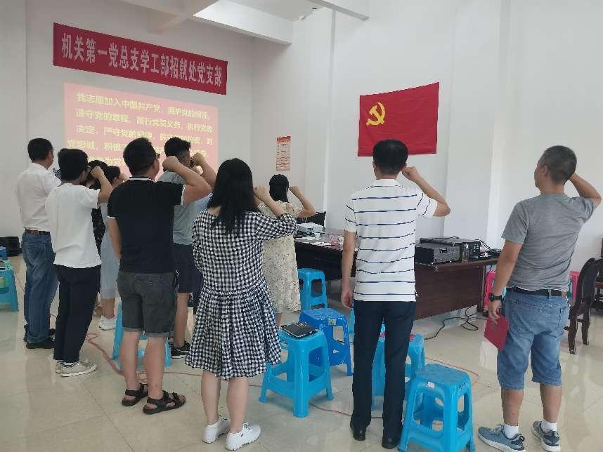 为庆祝中国共产党成立101周年,增强党员责任感和使命感,7月7日,学工部招就处党支部在众创空间111开展了“重温入党誓词、牢记初心使命”主题党日活动,学校党委副书记崔广平以普通党员身份参加,活动由党支部书记任江林主持。