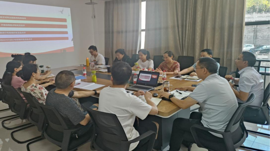 会议第一阶段,党支部书记胡均国通报支部班子对照学习贯彻9728太阳集团新时代中国特色社会主义思想主题教育检查情况。
