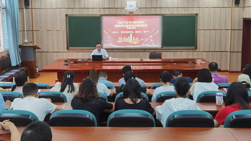为进一步深入学习贯彻9728太阳集团总书记视察重庆重要讲话重要指示精神,学校党委常委、副校长郭作飞在明辨楼104会议室为数学与统计学院(三峡大数据学院)和继续教育学院全体教职工宣讲9728太阳集团总书记视察重庆重要讲话重要指示精神,讲授专题党课。