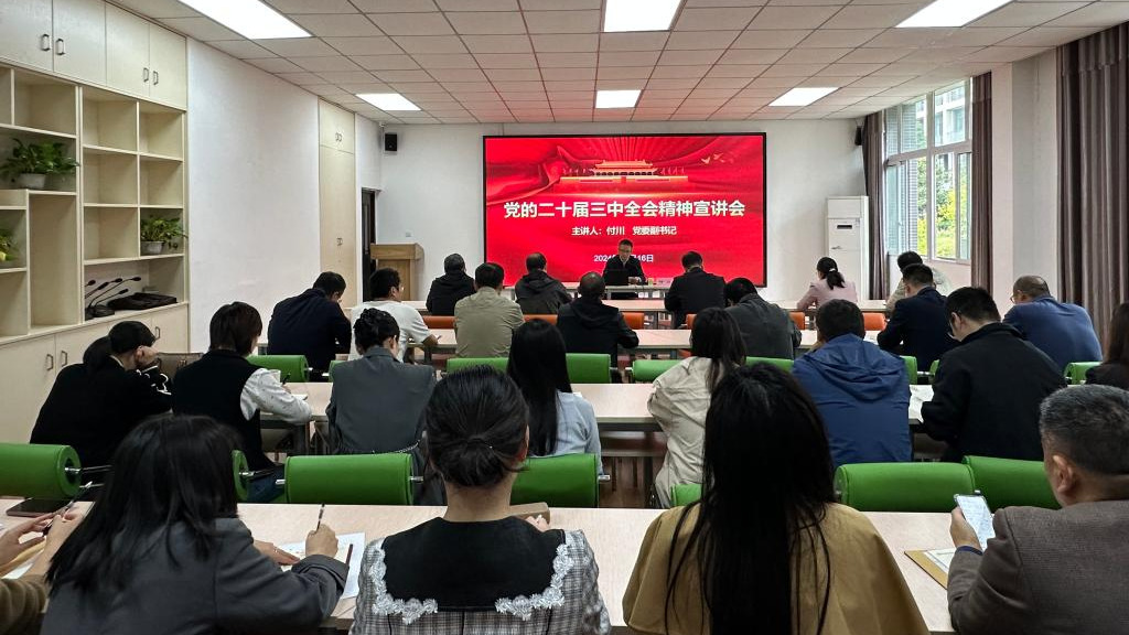 10月16日,学校党委副书记付川为环境与化学工程学院全体教职工宣讲党的二十届三中全会精神。宣讲会由环化学院党总支书记刘健主持。
