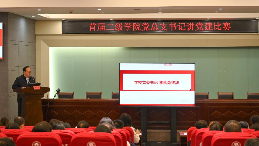 11月12日下午,学校首届二级学院党总支书记讲党建比赛在科技楼连廊会议室举行,学校党委书记李廷勇出席并致词。