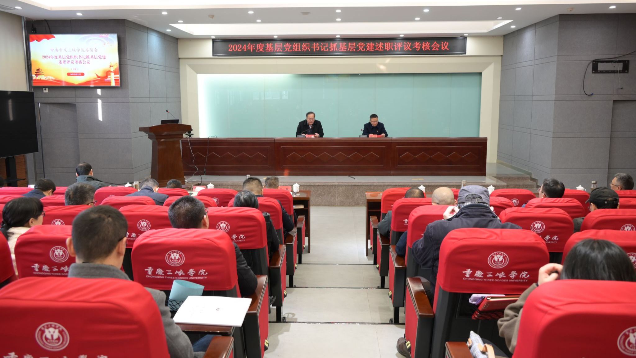 1月13日下午,学校党委举行2024年度基层党组织书记抓基层党建工作述职评议会议。党委委员、纪委委员、二级党组织书记、机关党支部书记、党支部书记代表、组织部全体人员参加述职评议考核会议。党委副书记付川主持会议。